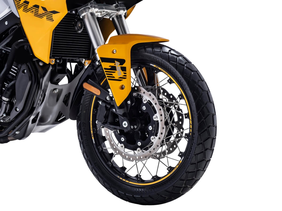 Клиренс 190 мм, переднее колесо 19″, заднее 17″, спицованные колёса с универсальными бескамерными покрышками для любых типов покрытий.