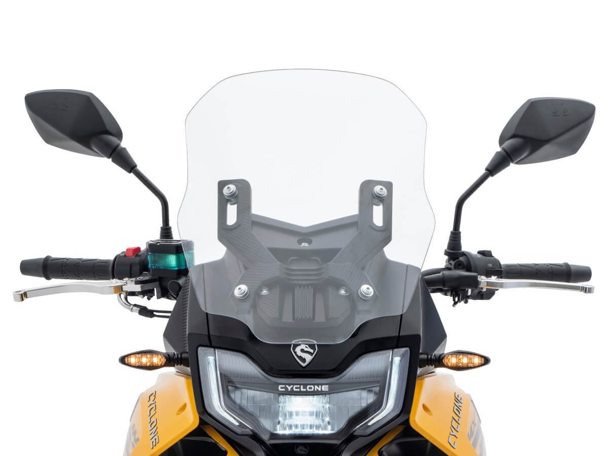 Выполнено из термопластика с высокой прочностью и светопропускающей способностью. Регулировка по высоте позволят подобрать аэродинамически оптимальный вариант для вашей ситуации.