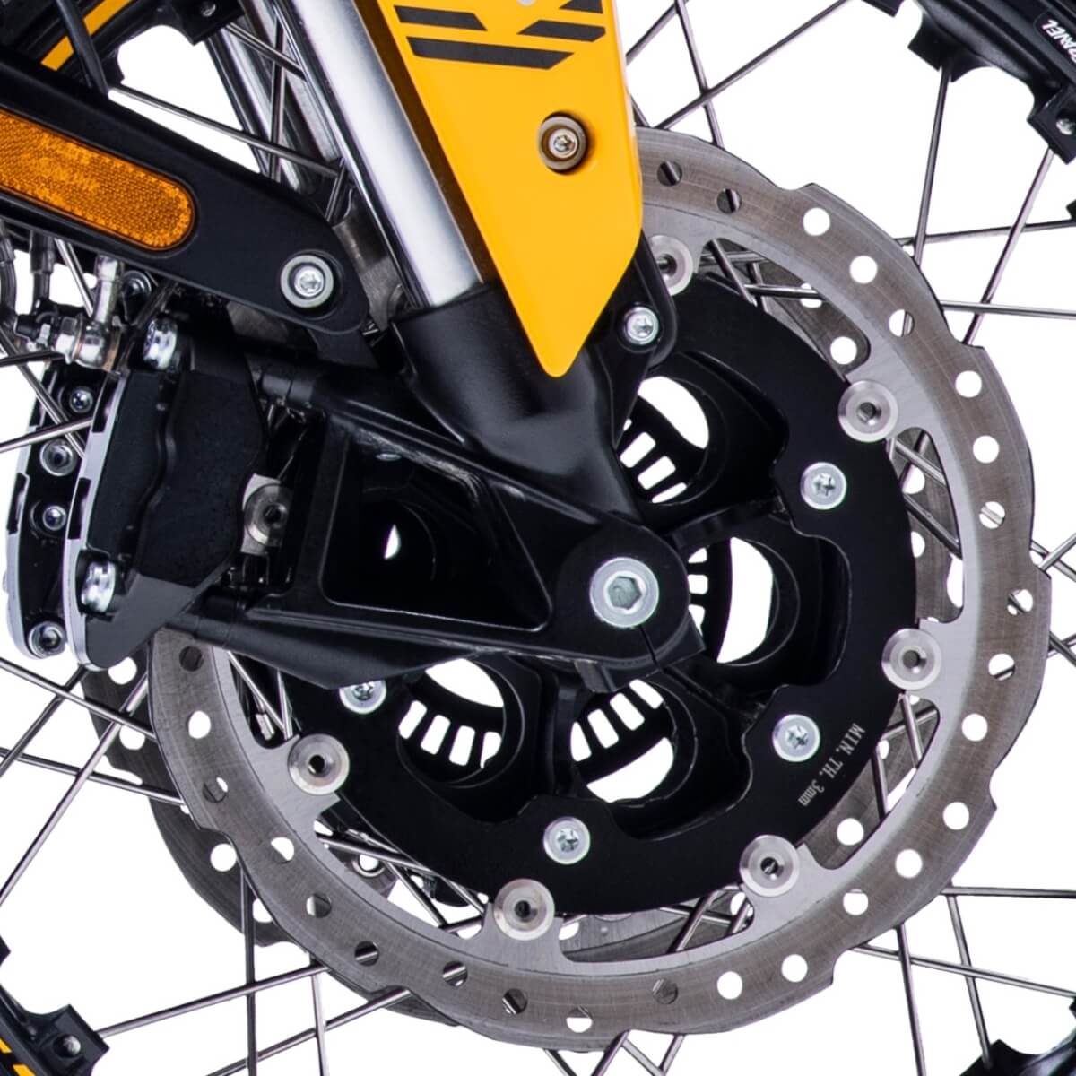 Дисковая гидравлическая система оснащена передними 4-поршневыми суппортами и задними 2-поршневыми суппортами. На оба колеса установлена ABS, которую можно отключить.