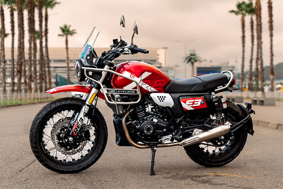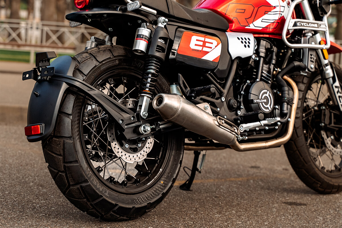 CYCLONE RE3 Scrambler позволяет комфортно ехать по плохой дороге, уверенно держаться в городе и выбираться туда, где асфальт заканчивается. При этом он остаётся компактным, стильным, удобным и доступным в ежедневной эксплуатации.