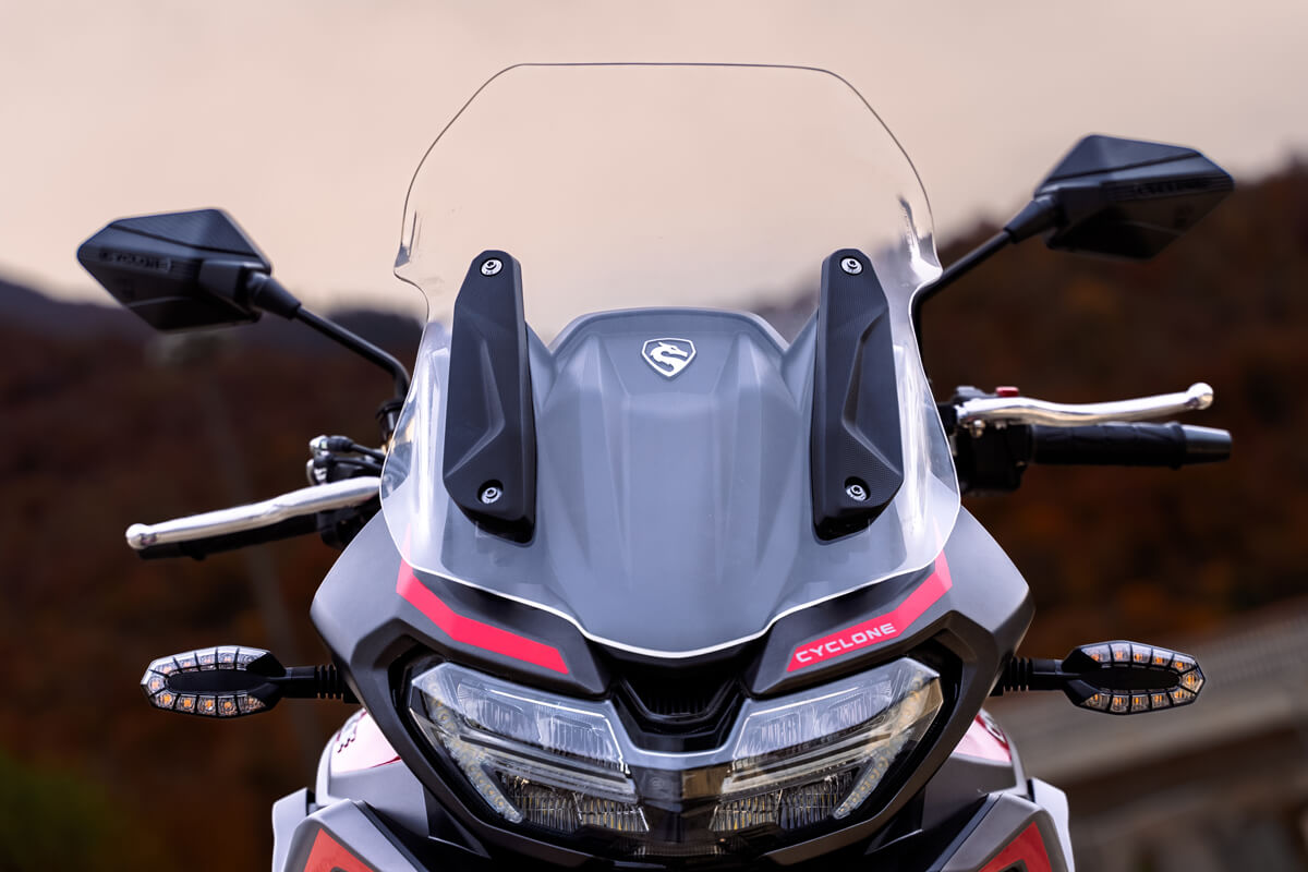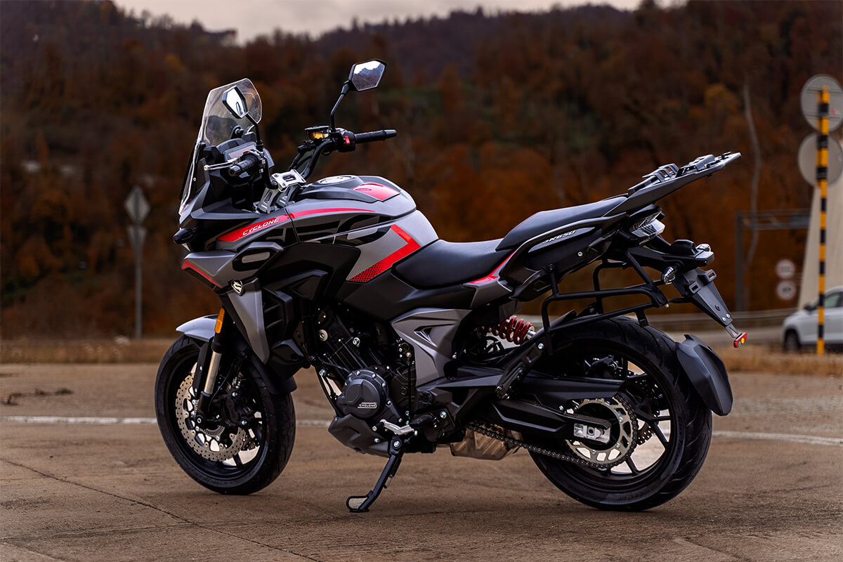CYCLONE RX6 – туристический эндуро для тех, кто не делит маршруты на асфальт и бездорожье, а просто выбирает направление и отправляется вперёд. RX6 одинаково уверенно чувствует себя в плотном городском трафике, на шоссе или грунтовых дорогах, недоступных обычным дорожным мотоциклам.
