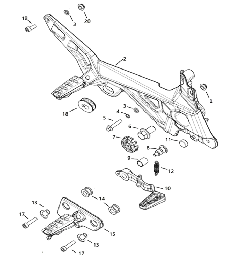 Главная Схемы запчастей Мотоцикл CYCLONE RX6 (SR650) Правые подножки.Рычаг заднего тормоза