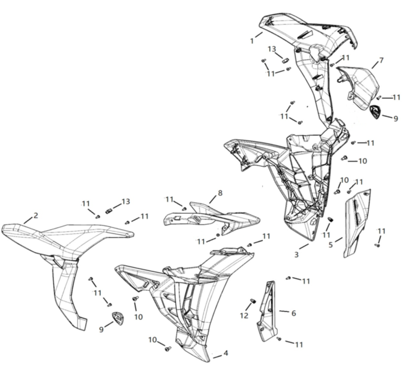 Главная Схемы запчастей Мотоцикл CYCLONE RX6 (SR650) Передняя внешняя боковая панель